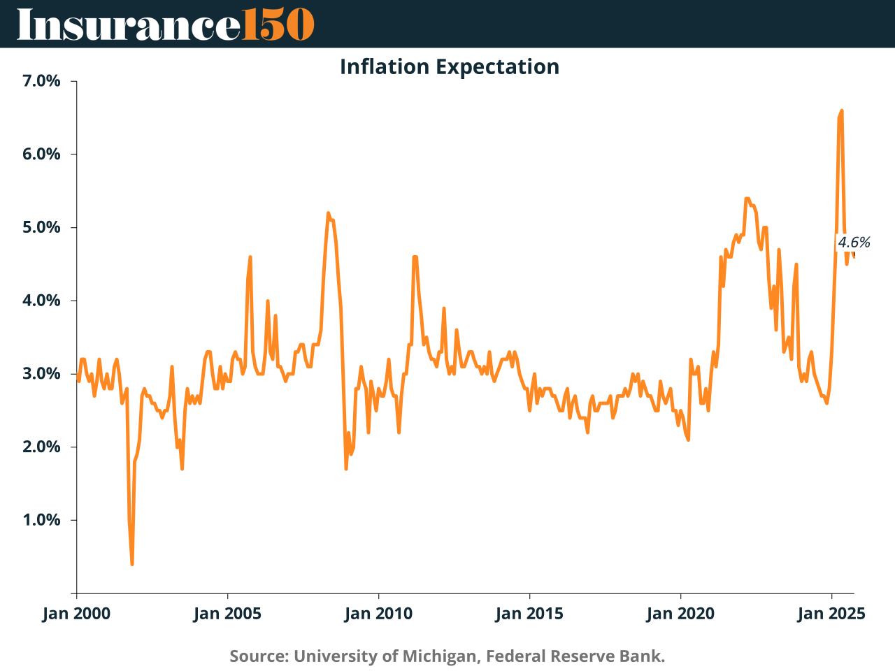 Inflation expectations remain volatile, with the latest University of Michigan survey showing a sharp rebound near 4.6%. Historically, consumer expectations are a powerful forward-looking indicator, influencing spending, saving, wage demands and interest rate expectations. While below the peak levels seen during the 2021–2022 surge, today’s expectations remain significantly above the Federal Reserve’s 2% target.