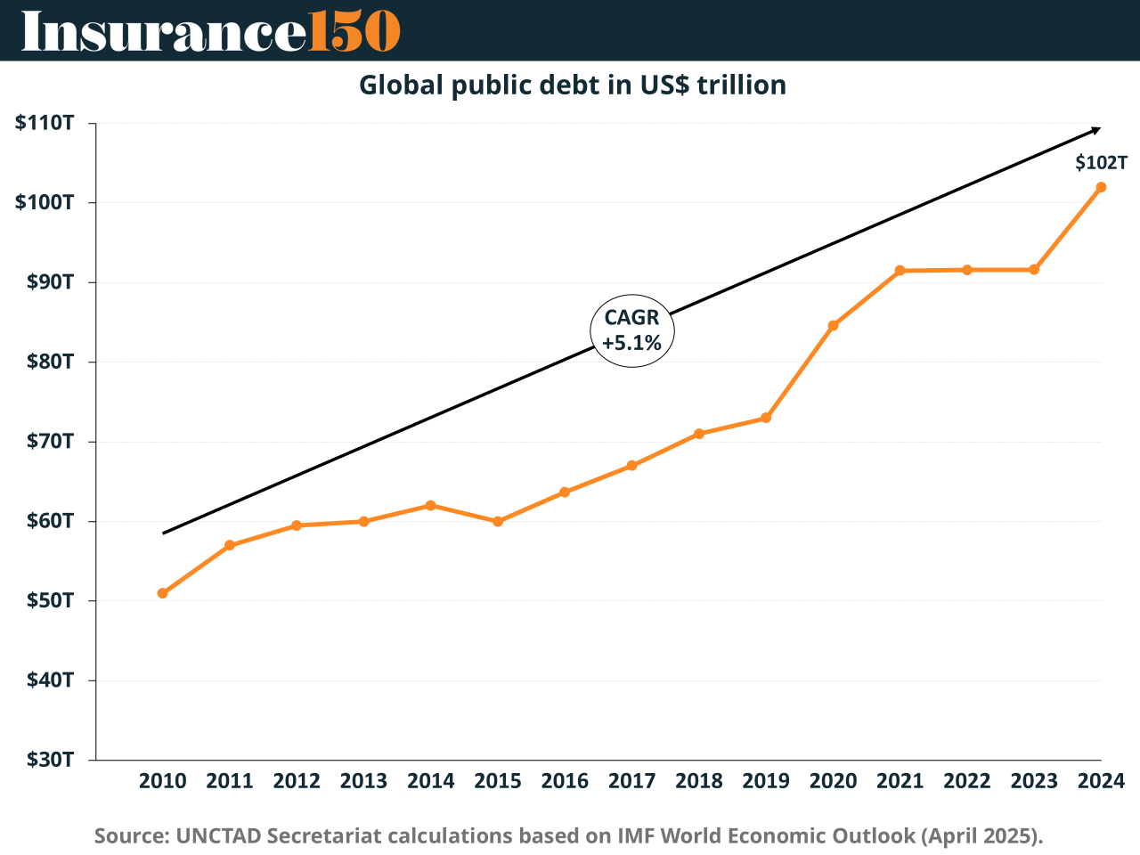 Global public debt has topped $100 trillion, but the real headline? It's not just ballooning—it's suffocating. Developing economies now carry twice the debt growth of advanced nations since 2010, with little to show in GDP or revenue. As interest payments outpace human development budgets, more countries are falling into the 60% debt-to-GDP club—58 and counting. Structurally, this isn’t just bad luck—it’s a broken financial system where the math doesn’t pencil. PE folks eyeing growth markets? Watch for mounting refinancing risks and FX exposures that could flip sovereigns from borrower to basket case overnight. (More)