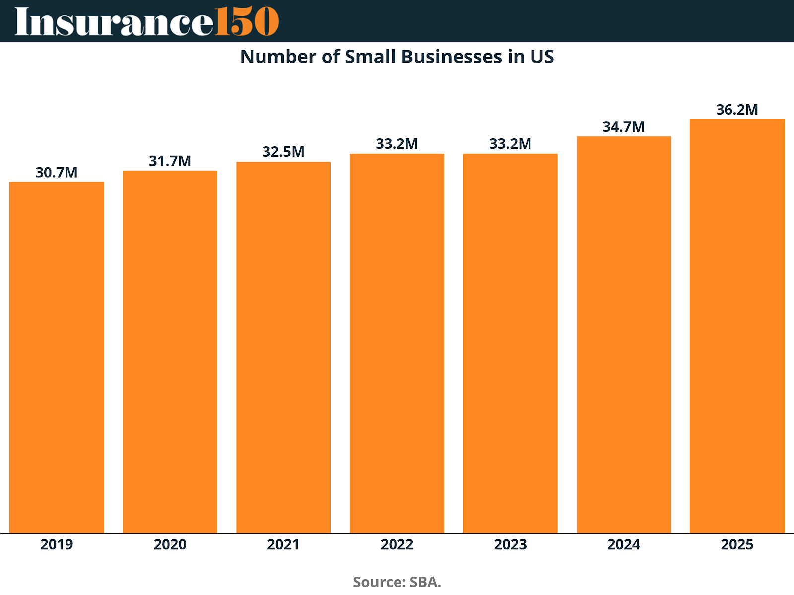 The demand base for SME insurance continues to expand alongside the proliferation of new enterprises. In the United States alone, the number of small businesses grew from 30.7 million in 2019 to 36.2 million in 2025, illustrating both entrepreneurial dynamism and the sector’s resilience despite macroeconomic headwinds. SMEs now represent 99.9% of all U.S. businesses and employ over 62 million Americans, underscoring their systemic importance to national economic stability.