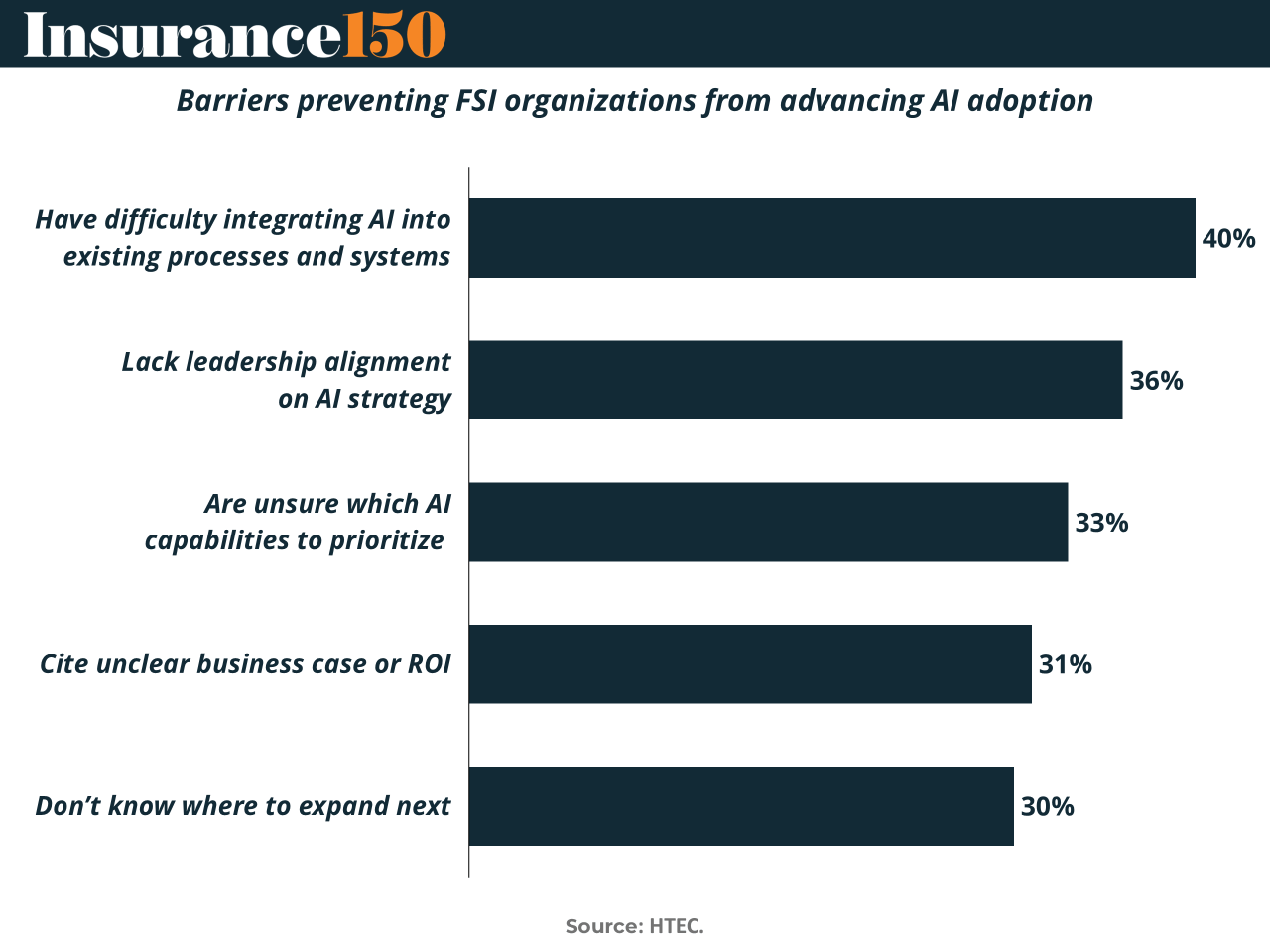The biggest blocker is technical integration. Roughly 40% of financial institutions struggle to embed AI into core systems—a familiar story of legacy platforms, fragmented data, and duct-taped architectures. Close behind is leadership misalignment, cited by 36% of organizations. That’s not a tech failure; it’s a governance one.